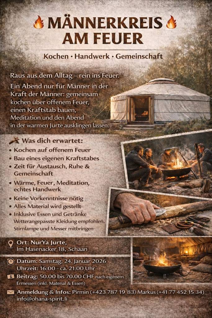 Am Samstag, 24. Januar 2026 wird der erste Männerkreis am Feuer stattfinden. Mehr Details findest du unter Veranstaltungen. Ich freue mich auf dich wunderbare Seele.