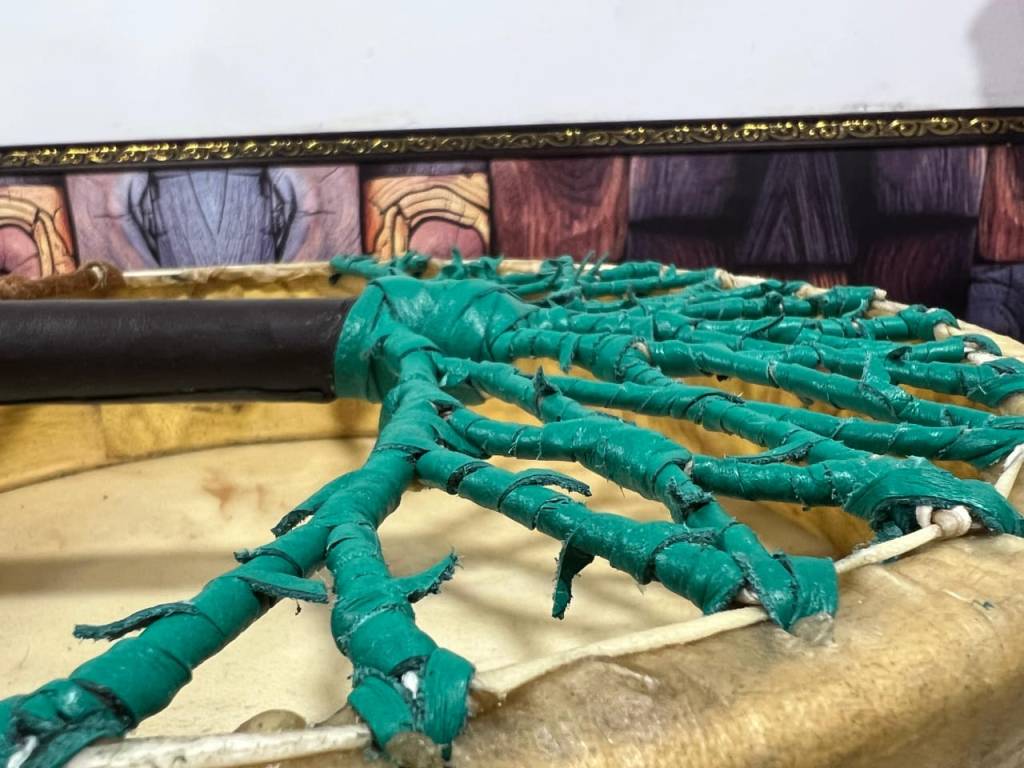 - Merkmale: Handgefertigt, Holzrahmen, Naturfellbespannung, ohne Leimbestandteile